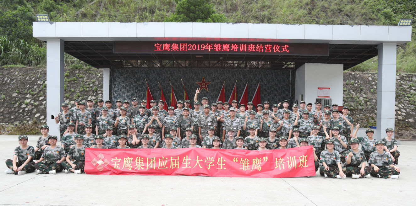 2019年共有來自全國各地的80名應屆畢業生加入寶鷹集團“雛鷹”計劃。7月7日起,雛鷹們在深圳市綜合素養實踐教育基地集結,展開為期16天的“軍訓+拓展+內訓”三合一集訓。
