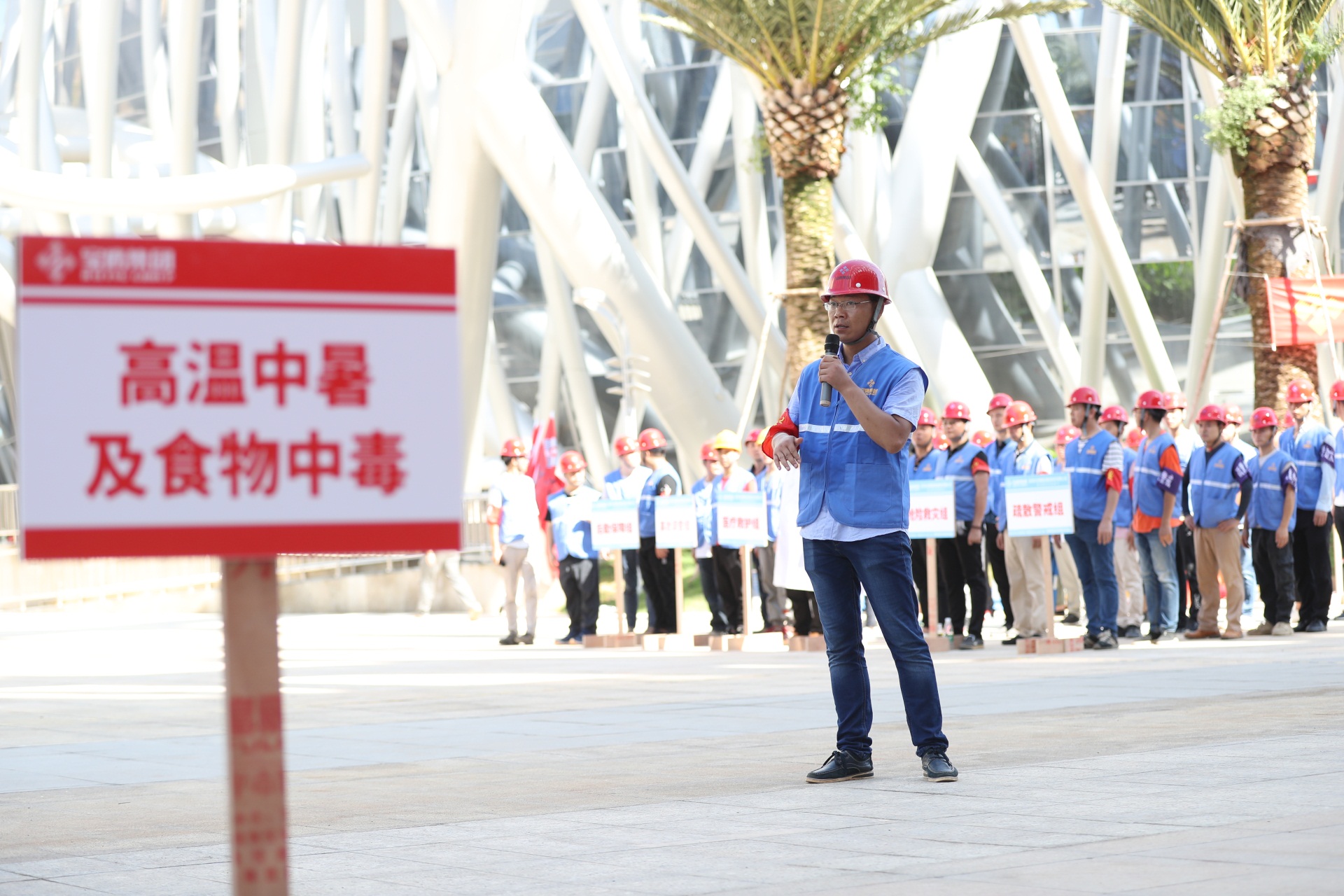 活動中,寶鷹集團?;◢u項目總指揮專碧明就?;◢u工程概況、綜合應急救援演練活動流程向現場人員進行介紹。