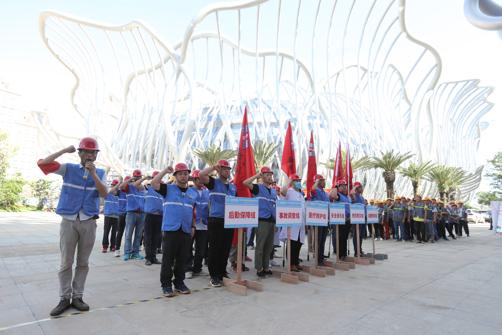 儋州市白馬井應急大隊分隊長王佳文,恒大集團?;◢u公司副總經理吳海,國會項目工程部經理張光成,寶鷹集團質安管理部以及?;◢u項目建設人員等近300人參與活動。