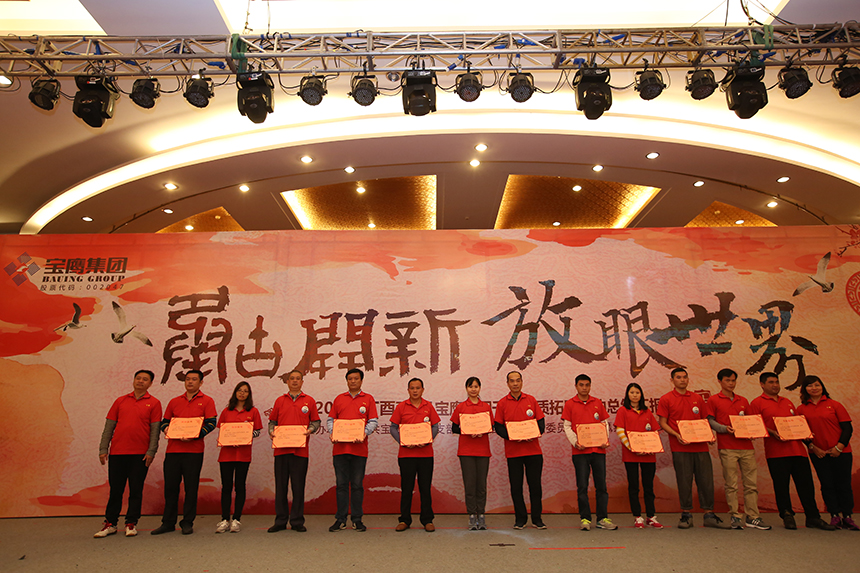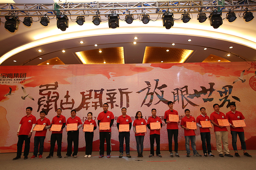 ▲寶鷹集團(tuán)副總裁戴宏為優(yōu)秀員工頒獎(jiǎng)