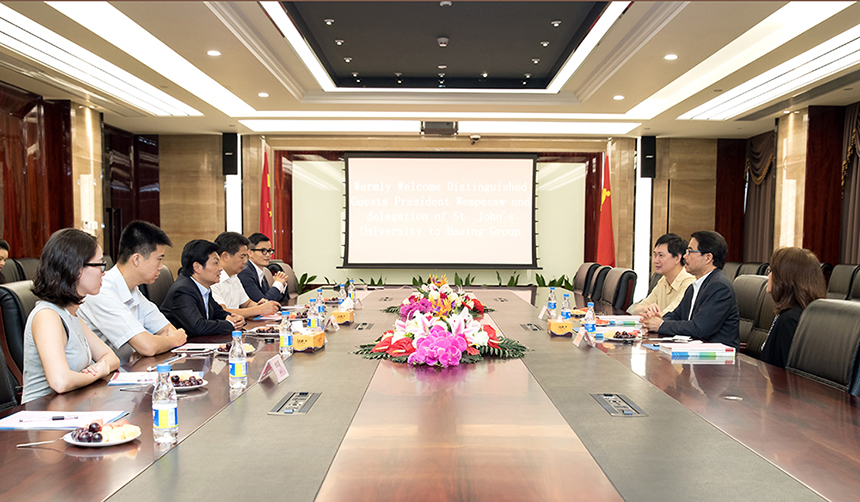 7月4日,應寶鷹集團董事局主席古少明邀請,美國圣約翰大學校長孔拉多·甘伯紹(Conrado Gempesaw)一行到訪寶鷹集團,雙方就校企合作、人才輸送、短期培訓計劃等議題深入交流并達成共識。