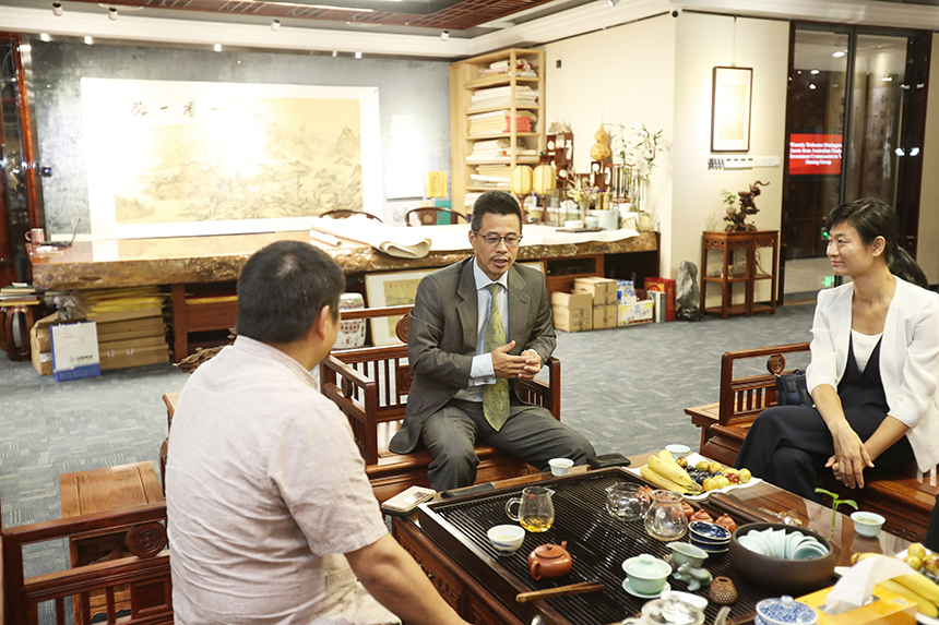 9月13日,澳大利亞貿易投資委員會大中華地區資深投資專員王恒巖一行到訪寶鷹集團,雙方就“一帶一路”建設情況、企業文化建設等問題進行了深入交流與探討。