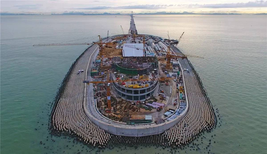 港珠澳大橋是國家重點工程,也是中國標志性建筑工程,連接香港、珠海、澳門的超大型跨海通道,全長55公里,歷經7年奮戰,現已進入收尾階段。人工島主體建筑是大橋外觀品質工程,將建成國內最大標準最高的清水結構建筑群,成為港珠澳大灣區的標志性建筑。