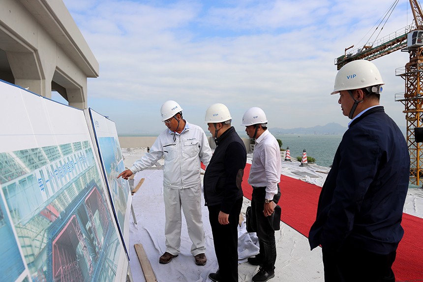 12月1日,為確保公司承建的港珠澳大橋東人工島主體建筑裝飾裝修工程在2017年12月25日前竣工,以保障港珠澳大橋2017年12月底具備通車條件,寶鷹集團副總裁古樸、于泳波趕赴一線考察港珠澳大橋東人工島工程項目進度,并在項目部召開沖刺誓師大會。