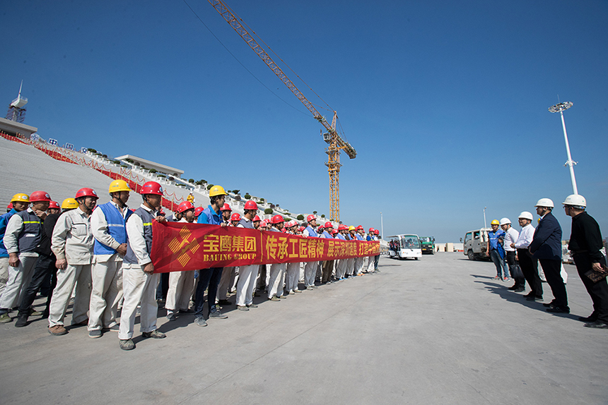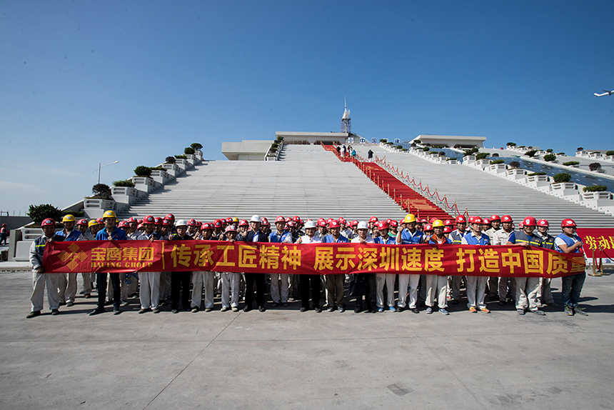 在隨后召開的誓師大會上,寶鷹集團總裁古樸為項目部人員加油打氣,鼓勵項目部人員協同作戰,攻堅克難。他表示,寶鷹集團自承接項目工程以來,面臨時間緊,任務重等多重問題。百人攻堅克難,背水一戰。在環境極端惡劣的情況下,寶鷹人不畏艱難,積極應對各種挑戰,做好了各項防控防風險措施。一切致力于做到精益求精,嚴格管控,杜絕絲毫誤差。寶鷹人要向世界展示企業實力和品質高度,全力以赴投入此項目,發揮以“智、敏、勇”為核心的企業文化精神,傳承工匠精神,展示深圳速度,打造中國質量!