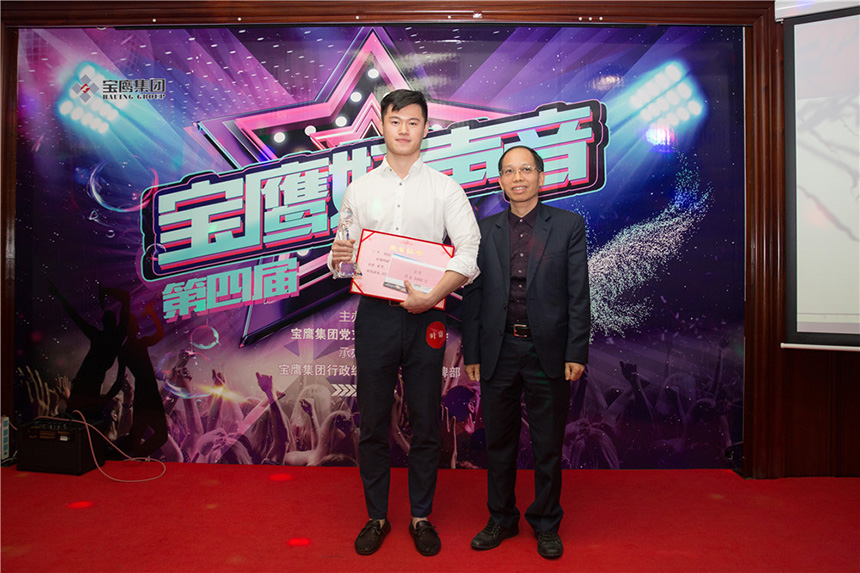 ▲寶鷹集團(tuán)總裁成湘文為冠軍獲得者工程綜合部朱暉頒獎