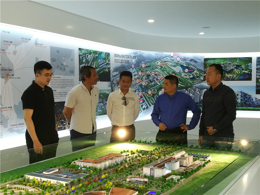 ▲寶鷹集團副總裁古樸(右二)與柬埔寨帝盛世界集團首席執行官呂汶錝(右一)就帝盛世界項目進行業務洽談