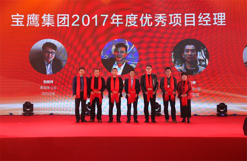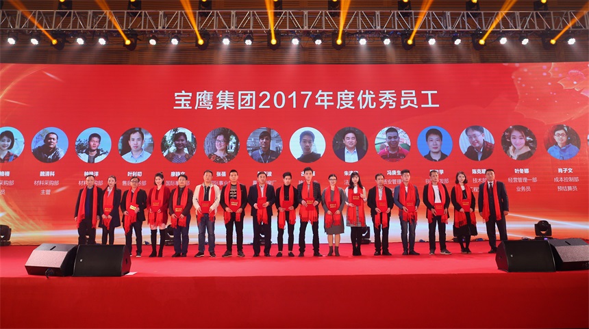為表彰十年如一日為公司奉獻(xiàn)心力的寶鷹人,大會(huì)還特別邀請(qǐng)了為公司奉獻(xiàn)十年以上的資深員工上臺(tái),集團(tuán)領(lǐng)導(dǎo)和受邀嘉賓為各位獲獎(jiǎng)?wù)哳C發(fā)獎(jiǎng)項(xiàng)和證書(shū)。獲獎(jiǎng)?wù)叽砭诎l(fā)言中強(qiáng)調(diào)團(tuán)隊(duì)的重要性和集體榮譽(yù)感,表示要在新的一年繼往開(kāi)來(lái),不斷努力。