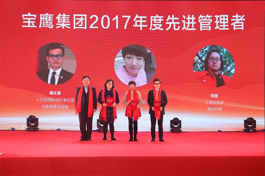 反映平凡崗位上寶鷹人堅(jiān)守精神的短片《你好,寶鷹人》在大會(huì)上播出,引發(fā)了現(xiàn)場(chǎng)觀眾的共鳴和思考。隨后,大會(huì)進(jìn)入工作表彰環(huán)節(jié),寶鷹集團(tuán)監(jiān)事會(huì)主席胡蘭萍依次宣讀了寶鷹集團(tuán)2017年總結(jié)表彰名單。