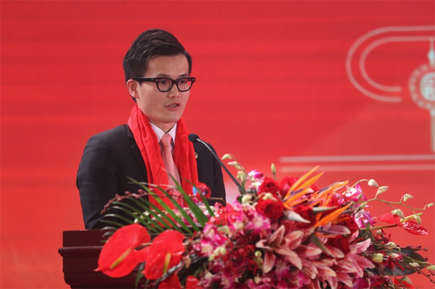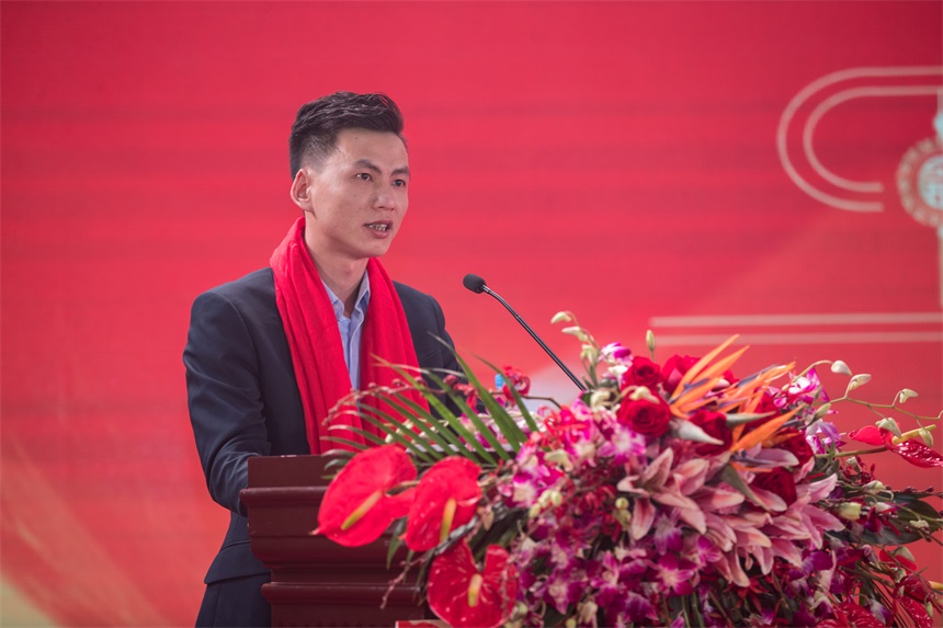 ▲優(yōu)秀員工代表馬寶恩上臺(tái)發(fā)言