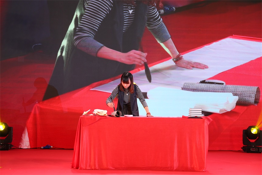 ▲王躍慶弟子林霓現(xiàn)場(chǎng)題字