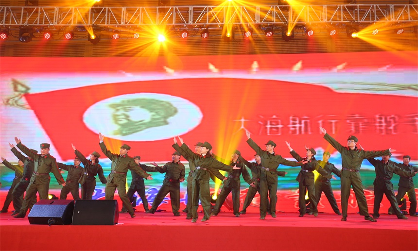 ▲歌舞《沒(méi)有共產(chǎn)黨就沒(méi)有新中國(guó)+大海航行靠舵手》