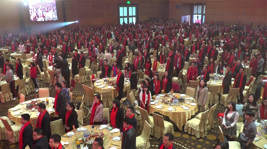 ▲年會(huì)現(xiàn)場(chǎng)齊唱國(guó)歌