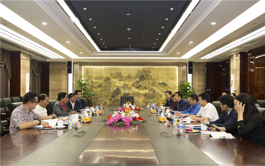 5月17日,柬埔寨國家警察總署副總長契亞特-查哈利特(H.E. Gen. Kirth Chantharith)上將、通訊部部長民-索萬那(H.E. Lt. Gen. Min Sovanna)中將、埔寨KCTC貿易公司總經理契亞特-塔瓦瑞特(Kierth Thavarath)等一行到寶鷹集團調研并洽談合作。