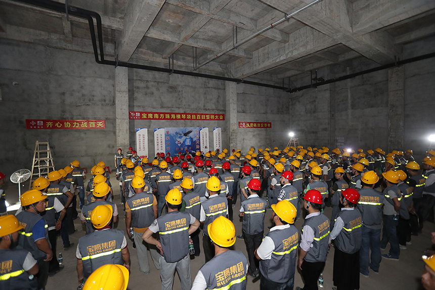 項目部人員在誓師大會上紛紛表示,將鼓足干勁、迎難而上,保質、保量、保時完成各項目標任務,爭創深圳速度,讓寶鷹精品工程綻放橫琴!