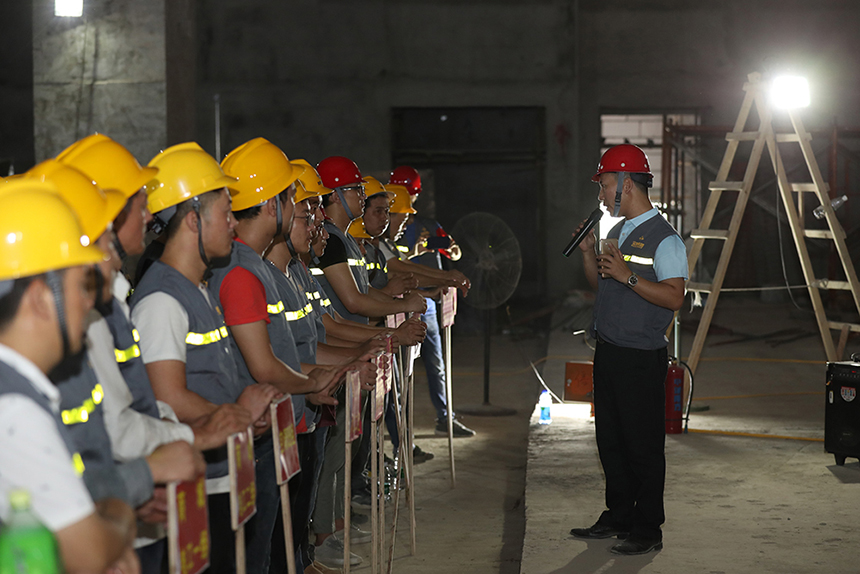 施工技術指導中,寶鷹集團副總裁、總工程師王建國指出,質量和工藝是建筑裝飾行業生存和發展的法寶,搶進度仍需牢記科學工藝、合理工序和項目團隊之間通力合作的重要性。橫琴星藝文創天地項目總指揮危怡,寶鷹集團總裁助理、寶鷹集團橫琴星藝文創天地項目副總指揮鐘志剛分別就嚴控工期、安全生產、工藝質量提出了具體要求,號召全體項目施工及管理人員團結一致,奮戰百日,確保高質量完成任務。