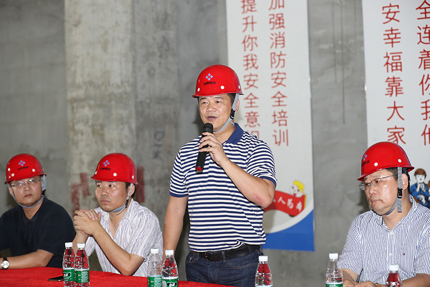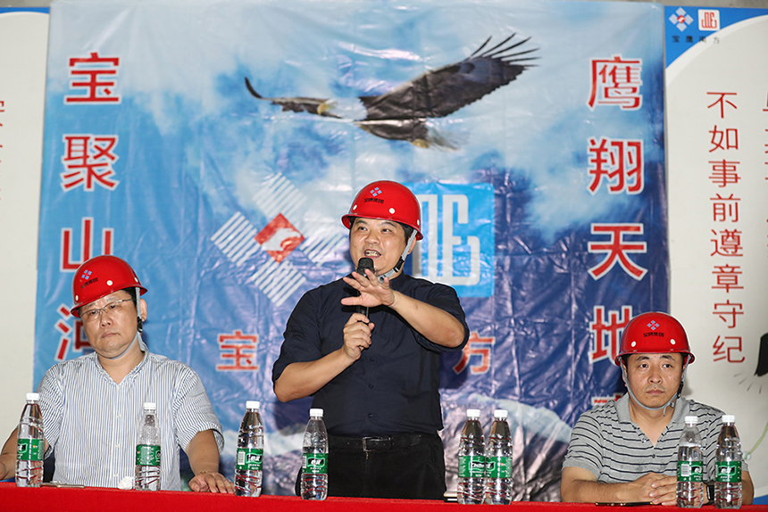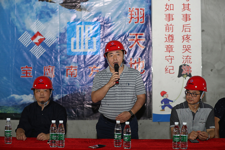 寶鷹集團副總裁古樸向全體項目員工發起號召,希冀大家團結一心、并肩作戰、攻堅克難,努力把星藝文創天地項目打造成集團2018年踐行深圳速度和質量的標志項目、觀摩項目。全面發揮以“智、敏、勇”為核心的企業文化精神,傳承寶鷹工匠精神。嚴格落實安全生產責任制,人人都需要擔負起重要的監督、示范責任。項目管理人員要對安全防范、隱患整改、督導檢查部署到位,以過嚴過硬的舉措確保萬無一失。三百六十行,行行出狀元,每個工種都是整體不可分割一部分,希望全體同事團結一心,協同作戰,以決戰決勝的斗志全力打好百日攻堅戰!