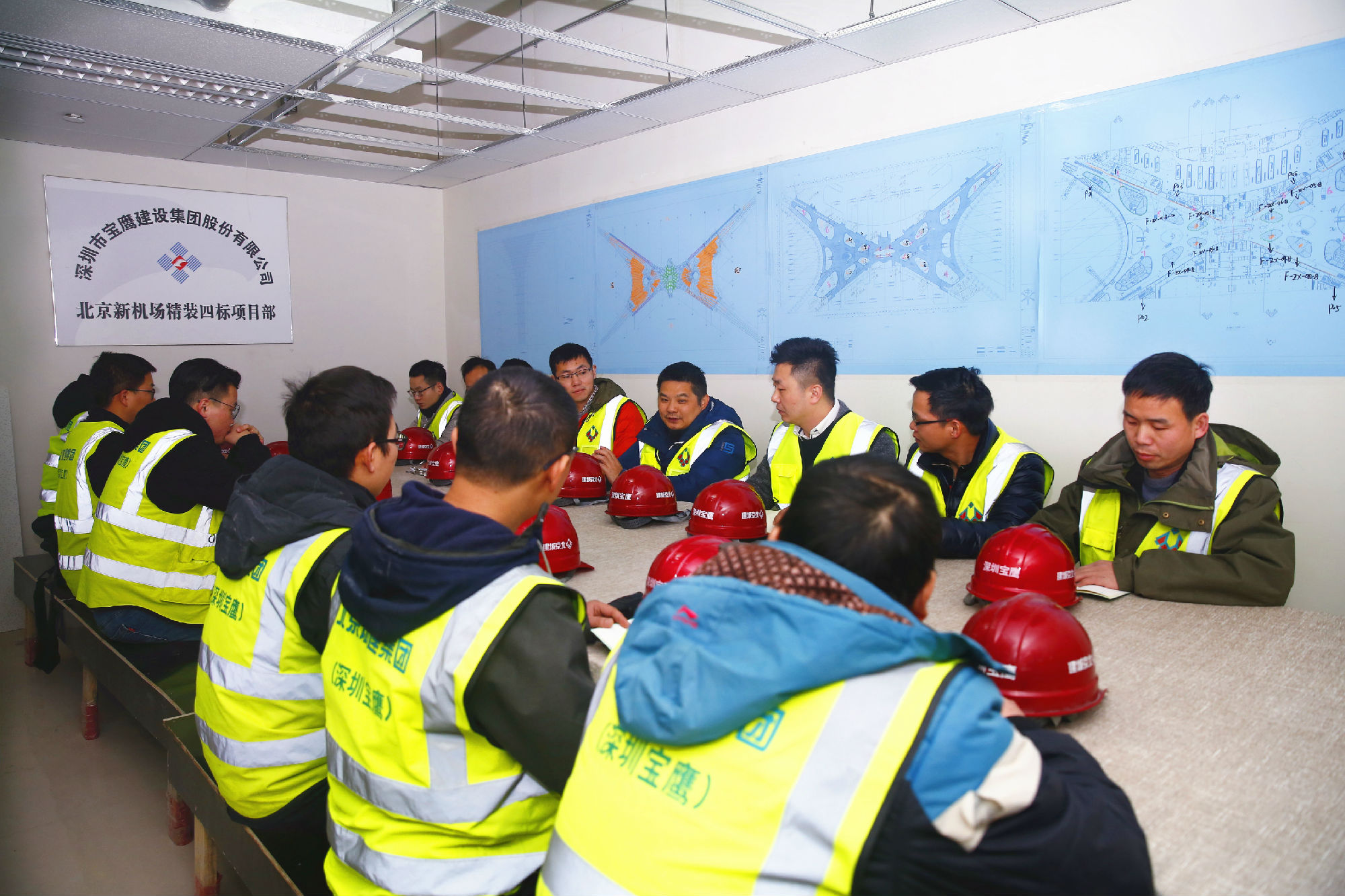 上午七點,寶鷹集團北京大興國際機場項目部召開例行早會,常務副總裁古樸為全體員工加油打氣。他說,首先向一線寶鷹員工致敬,北京大興國際機場是國家重點項目,亦是外界稱道的“新世紀七大奇跡”之一。寶鷹人應為能夠承建此項可以寫入史冊的重大工程深感榮耀。榮耀之下,寶鷹人更要充分發揮“智敏勇”精神,發揚寶鷹工匠精神,克服一切困難,重注細節,精益求精完成項目建設。為甲方,為國家交出一份滿意的答卷。