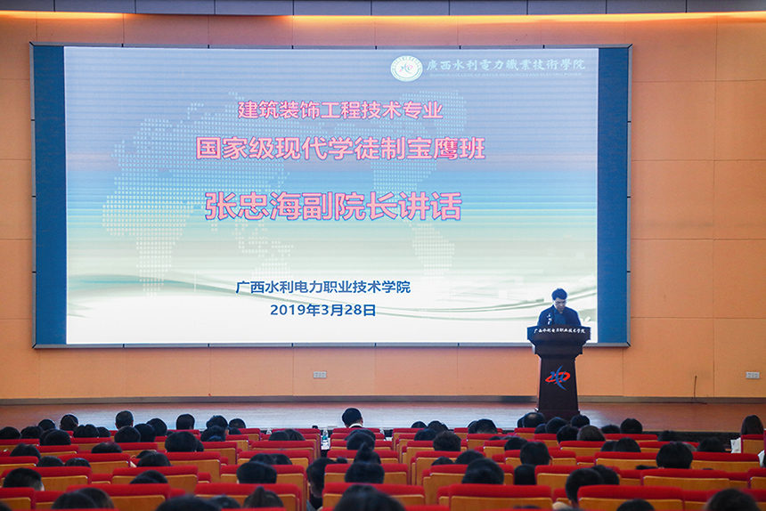 3月28日,“國家級現(xiàn)代學徒制寶鷹班”在廣西水利電力職業(yè)技術學院揭牌成立。