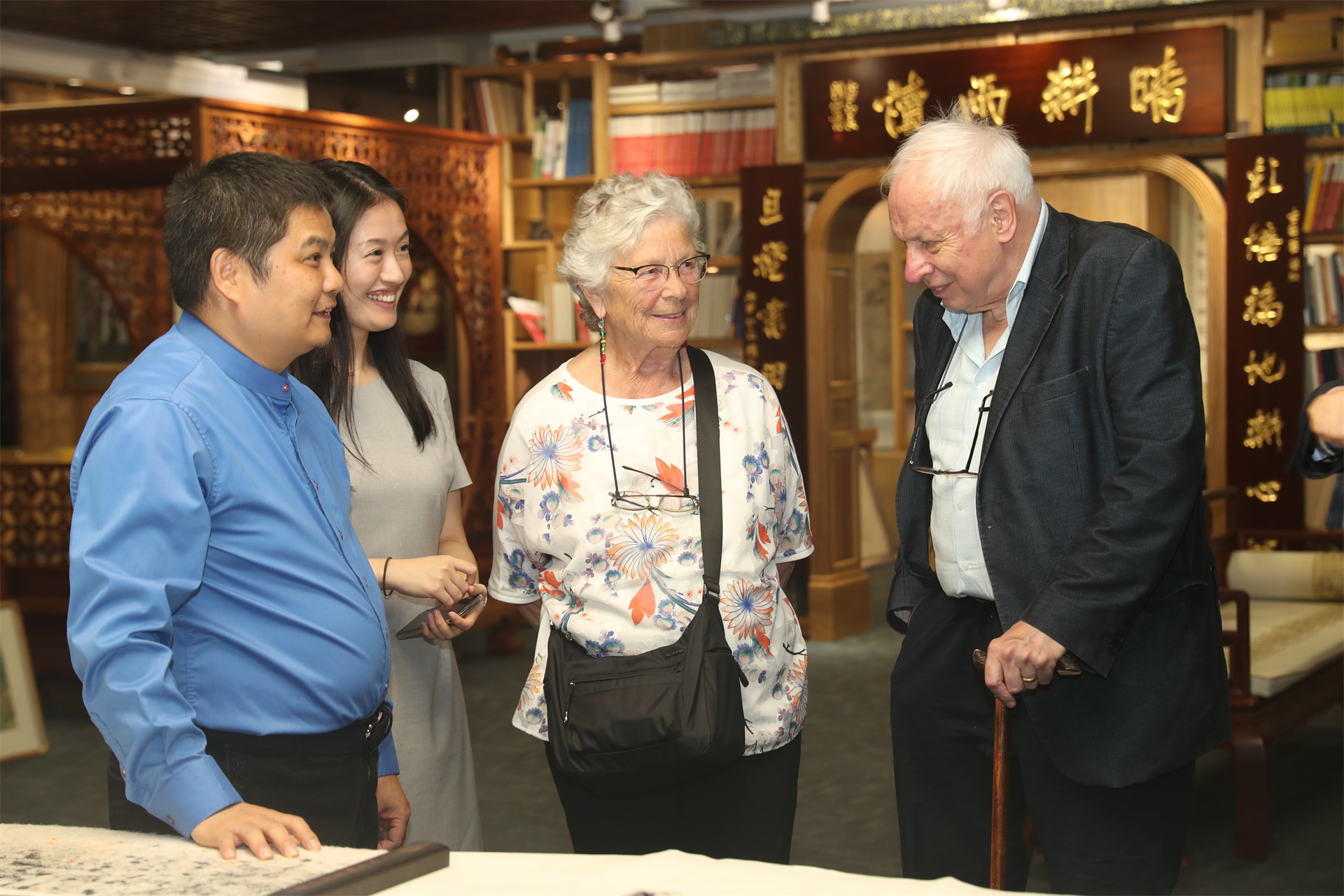 ▲ 托馬斯院士在寶鷹集團副總裁古樸的陪同下參觀寶鷹美術館
