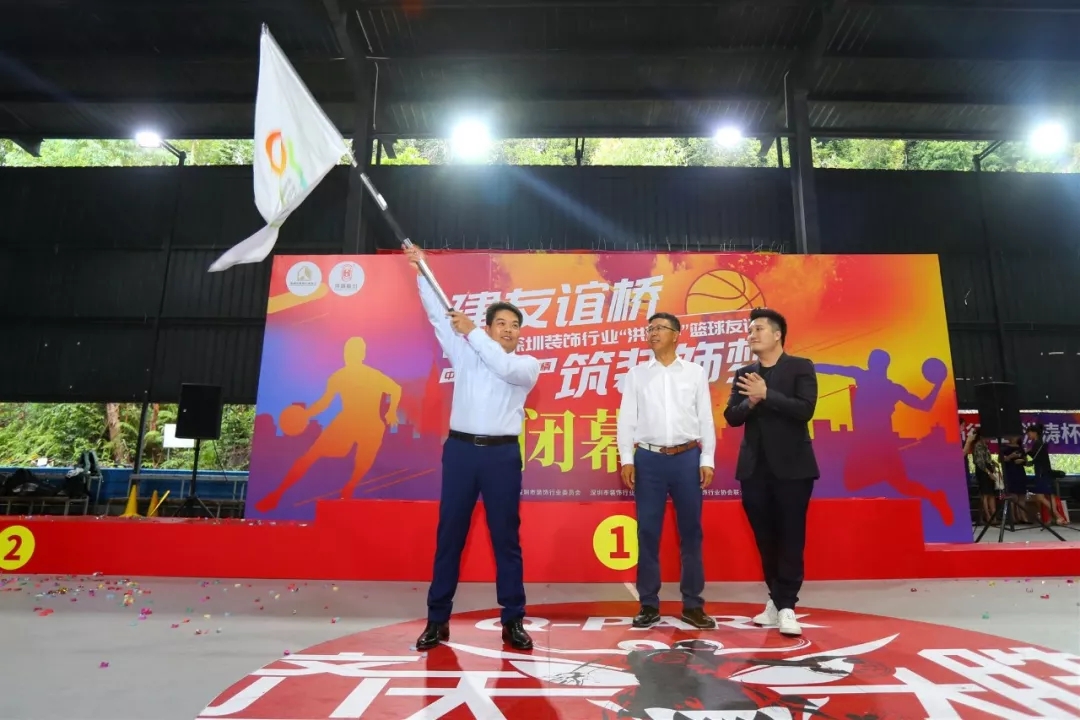 深圳市裝飾行業(yè)協(xié)會會長高剛、洪濤股份總裁劉望以及寶鷹股份董事長古少波共同開啟了籃球賽事會旗交接儀式。高剛會長、劉望總裁共同將會旗交接給下屆賽事承辦方——寶鷹集團,標(biāo)志著本屆賽事圓滿落幕,下一屆賽事即將啟幕。