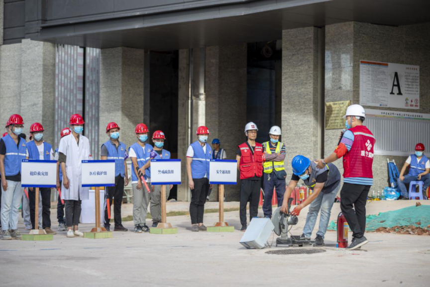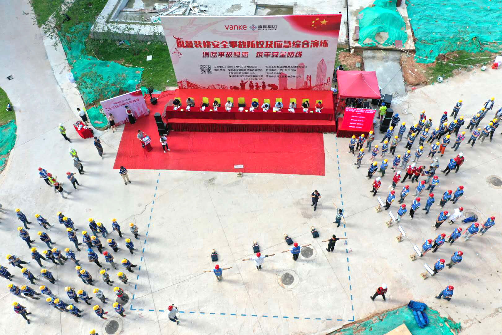 深圳萬科寶光龍片區總經理趙偲翼,深圳萬科工程管理中心向霆軒,深圳萬科工程經理黃書韻,寶安區新橋街道上星社區工作站副書記任國柱,深圳市沙井上星股份合作公司董事曾艷好、曾銳鋒,上星社區服務健康中心主任張運謀,深圳市邦迪工程顧問有限公司監理總監湛曉旭等200余人共同參與應急綜合演練。