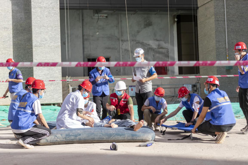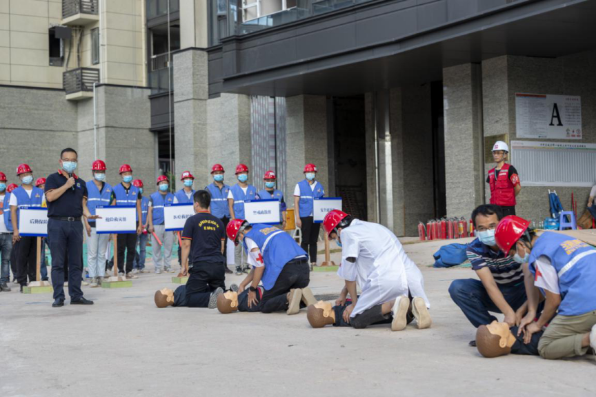 6月17日下午,由深圳萬科與寶鷹集團聯合主辦,寶安區新橋街道城建辦、新橋街道上星社區工作站、上星社區健康服務中心、沙井消防中隊、深圳市邦迪工程顧問有限公司、深圳市沙井上星股份合作公司協辦的主題為“消除事故隱患 筑牢安全防線”的批量裝修安全事故防控及應急救援綜合演練在深圳萬科星城名邸項目舉行。