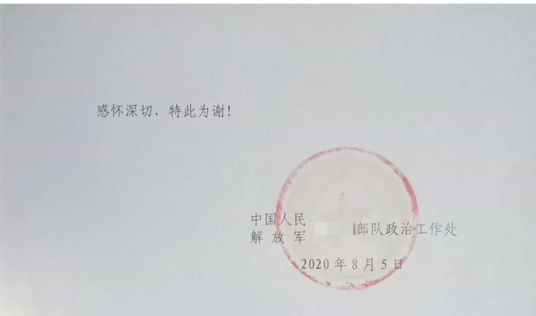 寶鷹集團(tuán)的暖心行動得到了陳飛靈之子陳曉康所在部隊(duì)的高度肯定。其部隊(duì)發(fā)來的感謝函中提到,“這一舉動充分發(fā)揚(yáng)了軍民團(tuán)結(jié)一家親的‘雙擁’模范精神,積極展現(xiàn)了寶鷹集團(tuán)負(fù)責(zé)擔(dān)當(dāng)?shù)钠髽I(yè)形象” “你們以實(shí)際行動支持偉大的強(qiáng)軍事業(yè),致力幫助員工家庭尤其是軍人家庭解決現(xiàn)實(shí)困難問題,為軍人免去后顧之憂”。
