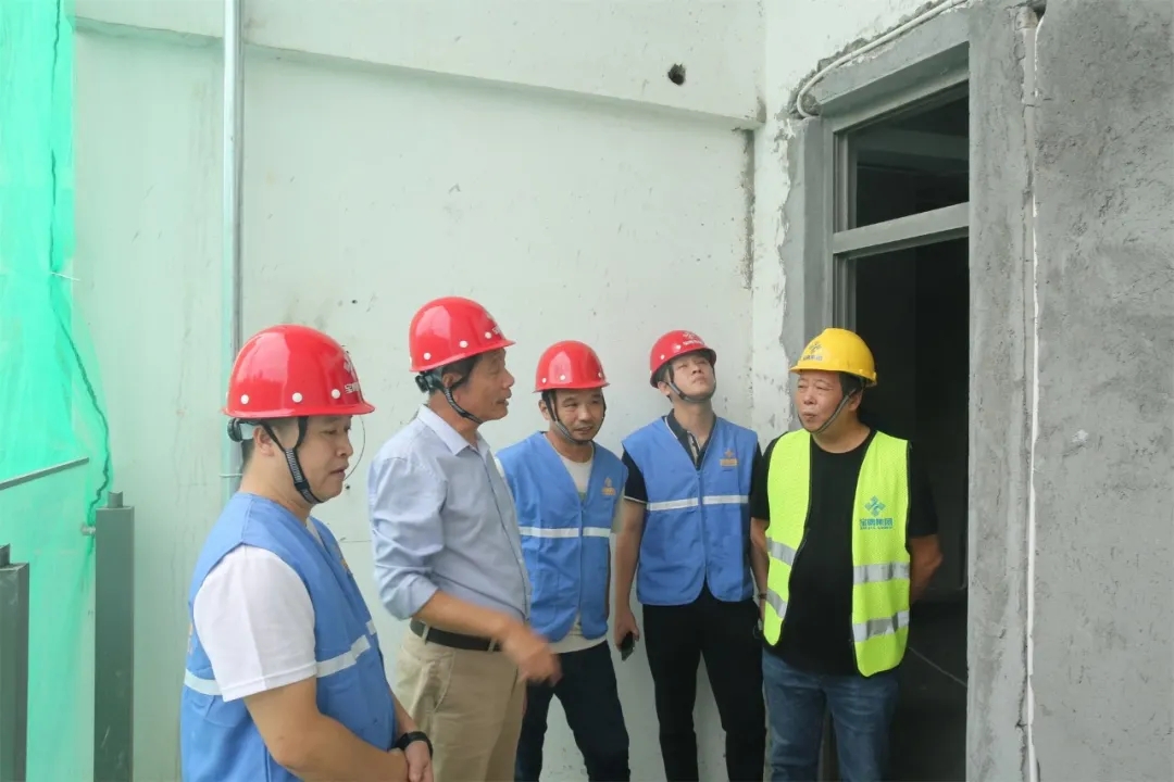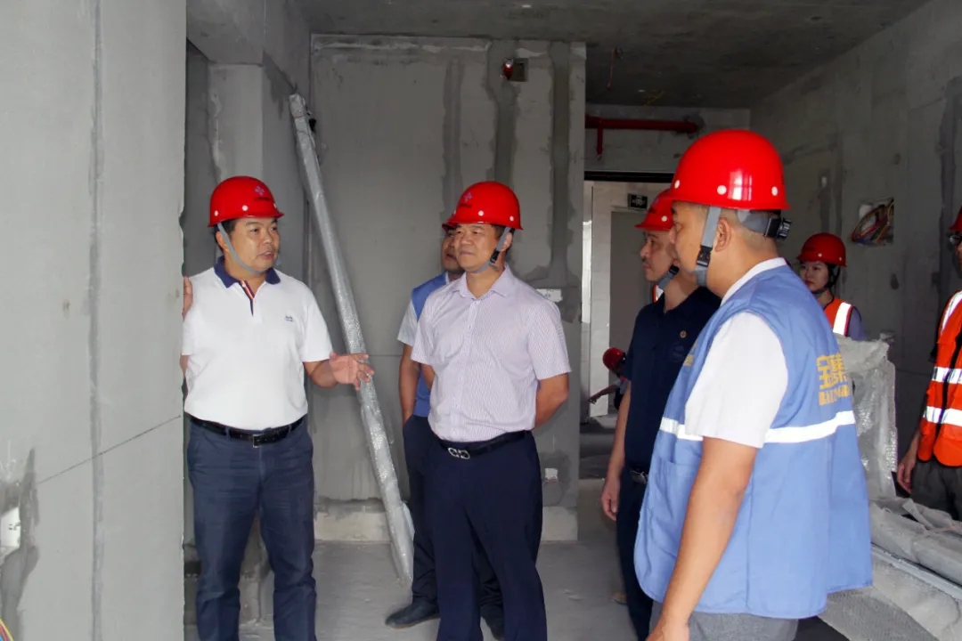 在副總裁陳龍、總裁辦主任梁淞的陪同下,寶鷹集團總裁于泳波一行到勤誠達正大城一、二期精裝修項目及勤誠達正大城一、二期、四期鋁合金門窗工程項目詳細了解施工進度、工程質量、安全生產和經營管理等情況。