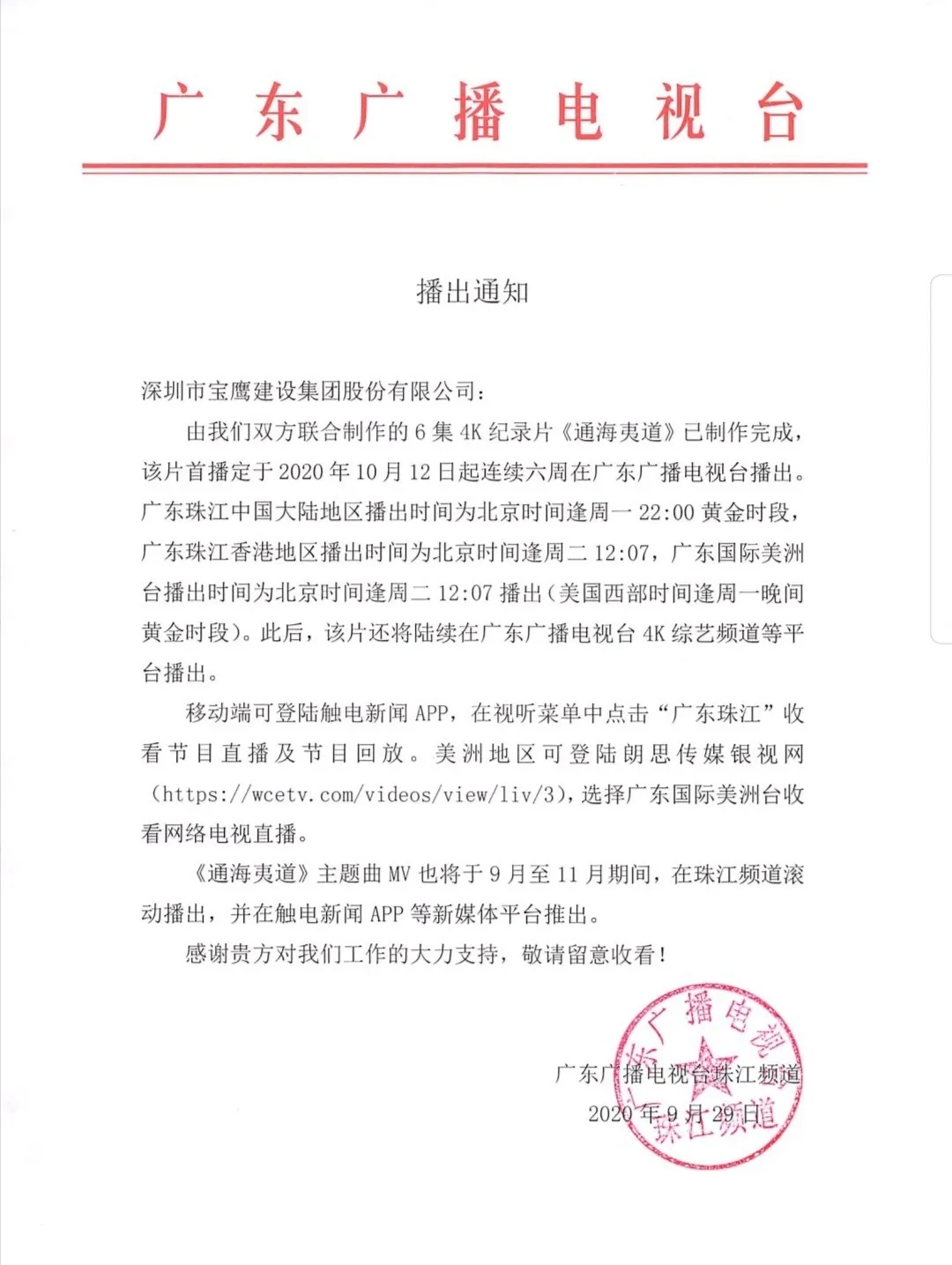 經過三年的精心攝制,由廣東廣播電視臺與寶鷹集團聯合制作的4K超高清紀錄片《通海夷道》最終完成,將于10月12日22:00在珠江頻道首播。