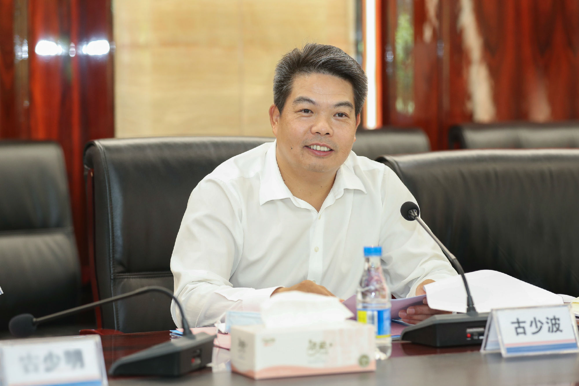 市地方金融監(jiān)管局黨組成員、新興金融行業(yè)黨委專職書記賴群陽,市政協(xié)港澳臺僑和外事委專職副主任莊睿寧,市地方金融監(jiān)管局金融服務(wù)處處長林志鍇,南山區(qū)政協(xié)副主席葉春等市、區(qū)有關(guān)部門領(lǐng)導(dǎo)陪同調(diào)研。寶鷹創(chuàng)始人古少明,寶鷹集團(tuán)監(jiān)事會主席余少潛、總裁于泳波,寶鷹股份副總裁、董事會秘書金紅英,財務(wù)總監(jiān)廖建中,寶鷹集團(tuán)副總裁吳倫敦、董事長助理梁淞、總裁辦公室副主任李強(qiáng)等參加座談。