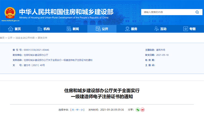 2.自2021年10月15日起,全國范圍內準予一級建造師初始注冊、增項注冊、重新注冊、延續注冊的,不再發放紙質注冊證書或加貼防偽貼;聘用單位基本信息修改的,不再加貼防偽貼;因紙質注冊證書遺失、污損或個人信息修改等需重新發放注冊證書的,不再補發或更換紙質注冊證書。