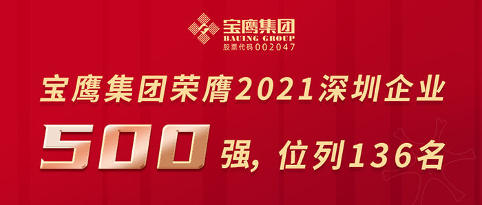 日前,2021深圳500強企業榜單發布。憑借出色的企業實力,寶鷹集團榮幸入榜,位列榜單第136位。