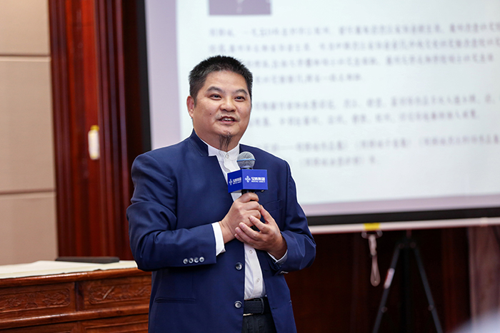 講堂中,周國(guó)城通過解讀大量作品,分析了王羲之、王鐸、張大千、吳昌碩、齊白石、八大山人、任伯年等名家在中國(guó)畫領(lǐng)域的特點(diǎn)和成績(jī),并從他們的作品中解讀中國(guó)精神。他認(rèn)為中國(guó)畫中的詩(shī)書畫印四元素是相輔相成、珠聯(lián)璧合的關(guān)系,是千百年來(lái)文化發(fā)展的結(jié)晶,是各種文化要素的高度凝練,是世界文化的瑰寶。相比西洋畫的寫實(shí),中國(guó)畫的寫意更側(cè)重于哲學(xué)層面的意義,中國(guó)繪畫是一種難度、一種高度、一種精神,值得所有國(guó)人繼承和發(fā)揚(yáng)。