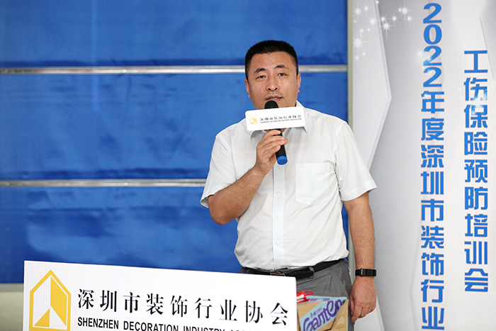 深裝協常務副會長王彥波在致辭時表示,建筑裝飾行業極具勞動強度大、項目小而散、人員密集且流動性大的特點,因此對從業人員進行工傷預防培訓是非常必要的。通過培訓,既保護了勞動者的基本權益,也保障了企業的經營生產安全。希望寶鷹集團深入貫徹政府部門及協會的相關部署,扎實全面做好工傷保險預防宣講和培訓工作。