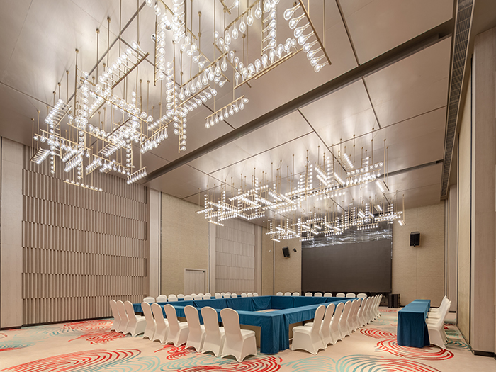 以文化為基礎、以藝術為載體。酒店多功能廳、宴會廳全部采用訂制的大型吊燈,搭配淺色墻面和印有文化符號的地毯,使整個空間簡潔商務,既有南充特有的文化標簽,又有凱悅酒店獨有的品牌調性。同時,裝配的視聽系統、遠程打印、視頻會議等智能設備,可以滿足商務會議、大型會展、婚禮等不同規格活動需求。