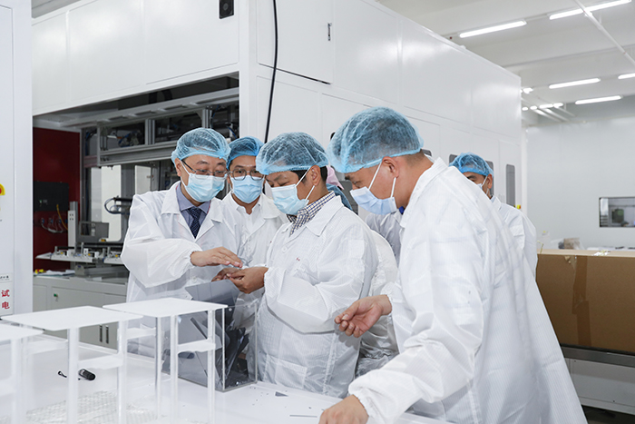 在捷佳偉創(chuàng)董事長余仲、財務(wù)總監(jiān)金晶磊的陪同下,古少明、張東輝先后參觀了捷佳偉創(chuàng)的企業(yè)展廳與太陽能電池設(shè)備研發(fā)生產(chǎn)車間,了解捷佳偉創(chuàng)的企業(yè)發(fā)展戰(zhàn)略、產(chǎn)業(yè)布局、市場客戶、技術(shù)研發(fā)等情況,近距離感受了解受捷佳偉創(chuàng)的主要生產(chǎn)設(shè)備、工藝流程、專利技術(shù)等。