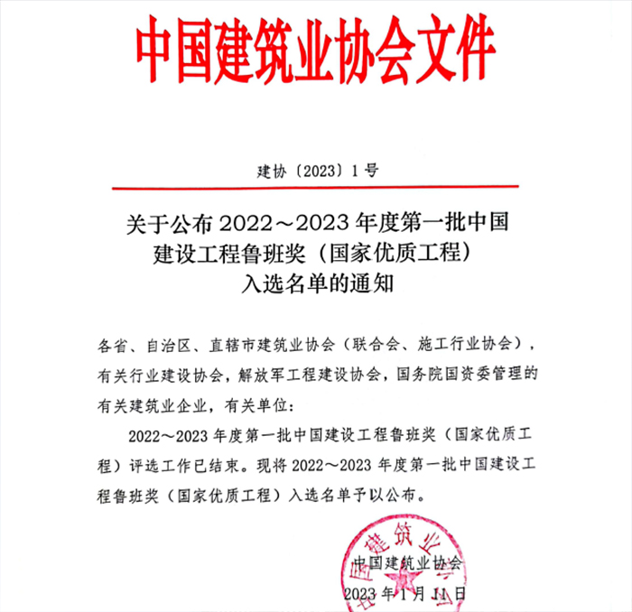 中國建筑業協會實施評選的獎項,是中國建筑行業工程質量頒發的最高榮譽獎。