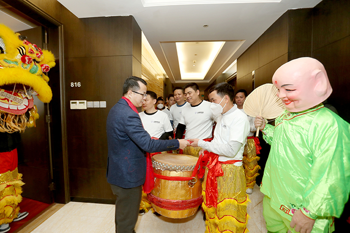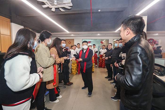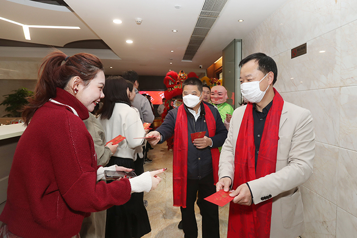 9點(diǎn)18分,伴隨著震耳的鞭炮聲和歡快的寶鷹醒獅隊(duì)鑼鼓聲,寶鷹股份副董事長(zhǎng)兼總經(jīng)理古少波,寶鷹股份常務(wù)副總經(jīng)理、寶鷹建設(shè)董事長(zhǎng)薛依東攜公司高管團(tuán)隊(duì)向總部全體員工拜年,派發(fā)開(kāi)工利是。懷著對(duì)未來(lái)的美好憧憬與期待,全體寶鷹人必將凝聚“一家人一條心一起干”的磅薄力量,擺出“開(kāi)局就開(kāi)戰(zhàn)、起步就起跑”的姿態(tài),同心同行啟航新征程。