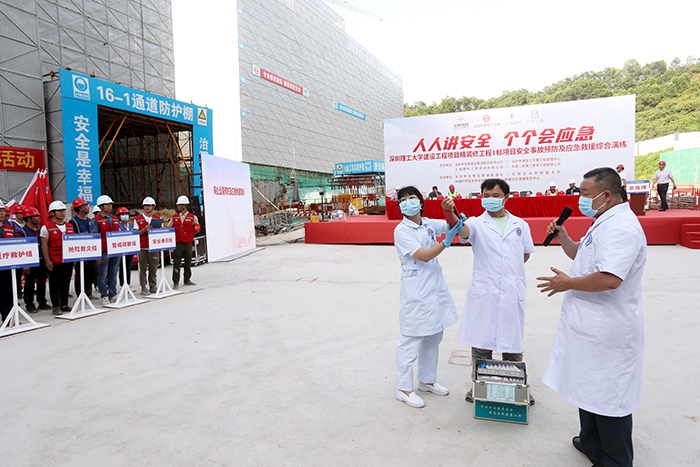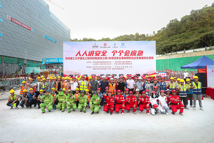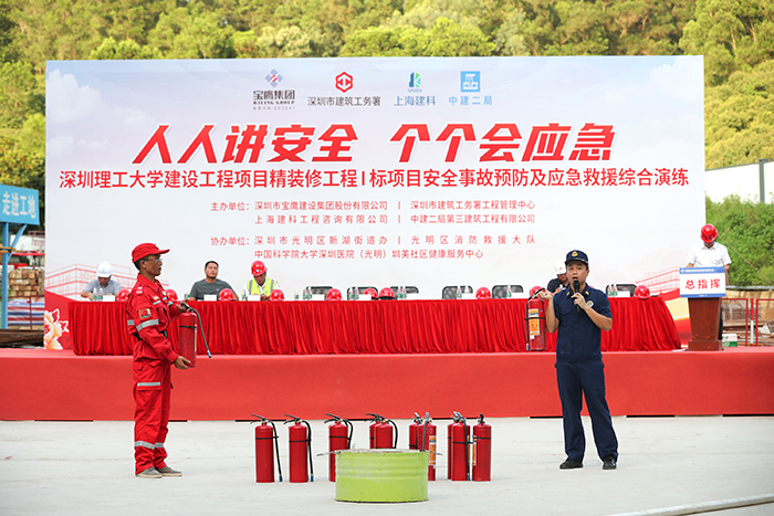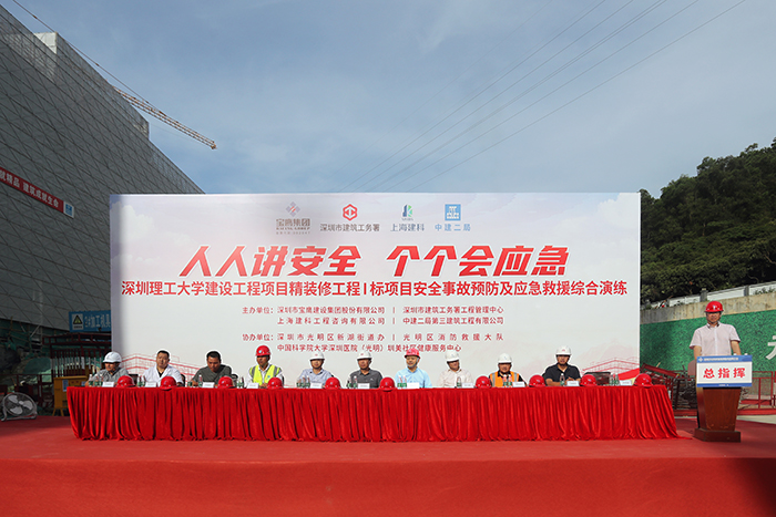 6月21日,由深圳市寶鷹建設集團股份有限公司、深圳市建筑工務署工程管理中心、上海建科工程咨詢有限公司、中建二局第三建筑工程有限公司聯合主辦,深圳市光明區新湖街道辦、光明區消防救援大隊、中國科學院大學深圳醫院(光明)圳美社區健康服務中心協辦的2023年安全生產月”安全事故預防及應急救援綜合演練在深圳理工大學建設工程項目舉行