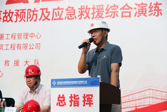 陳海明調研員在致辭中對活動的舉辦表示贊賞,對寶鷹建設集團重視安全生產,以練促產表示肯定。他指出,應急綜合演練通過宣傳培訓,推動安全制度建設,樹立安全責任意識,營造良好的安全生產氛圍,杜絕各類安全事故發生,力求“無急可應”。通過實戰演練,提高應急預案的針對性、實用性和可操作性,完善應急各單位、個人的工作職責,提高協調配合能力,提高應急人員在緊急情況下妥善處置事故的能力,務必“有急能應”。希望所有參建單位和人員能夠通過此次的演練達到預期目的,為深圳理工大學的建設保駕護航,為個人的平安保駕護航。