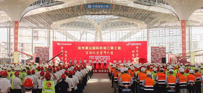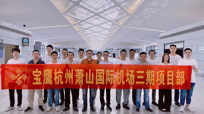 寶鷹集團承建的杭州蕭山國際機場三期項目T4航站樓及陸側(cè)交通中心工程旅客航站樓及北一指廊工程精裝五標(biāo)段,功能涉及國內(nèi)混流、國際到達(dá)、國內(nèi)出發(fā)和國際出發(fā)。