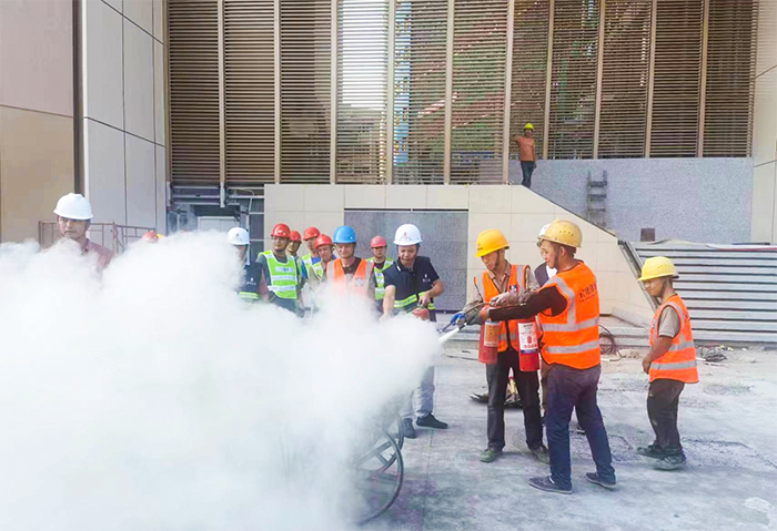 項目部根據生產特點和實際情況,開展消防安全演練。項目負責人作為消防安全第一責任人,根據編制的消防應急預案,組織全體施工人員參與消防演練,演練完后及時總結,糾偏、完善應急預案,提升應急隊伍的應急救援能力。