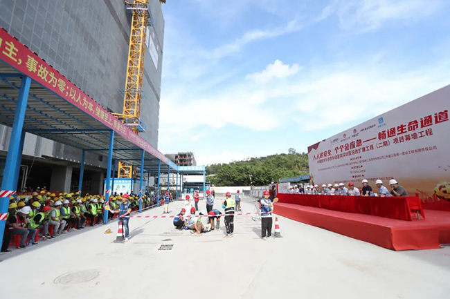 迪工程咨詢有限公司、中建三局第一建設工程有限責任公司聯合主辦,深圳市龍崗區龍城街道辦、深圳市龍崗區大運城消防救援站、深圳仁安醫院協辦的2024年安全事故應急救援及預防綜合演練在中國醫學科學院腫瘤醫院深圳醫院改擴建工程(二期)項目舉行。