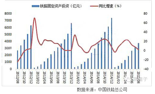 2015年1-8月,國家鐵路完成固定資產投資3786.3億元,同比增長2.4%,增速有所放緩。