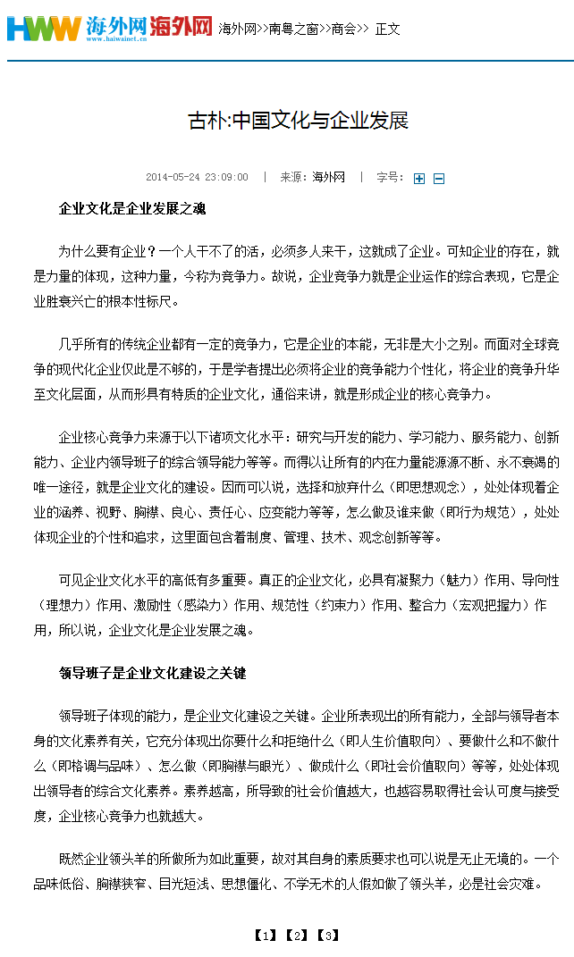 近日,人民日報刊發(fā)副總裁古樸文章《中國文化與企業(yè)發(fā)展》,論述文化與企業(yè)的關聯(lián)性。現(xiàn)將全發(fā)刊發(fā)如下,并附原文地址。