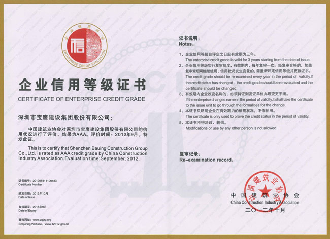 近年來,寶鷹集團以企業文化建設為依托、緊抓質量創優和科技創新,取得了突飛猛進的發展。此次集團憑借優秀的業績被評為中國建筑業最具成長性企業百強和全國建筑業AAA級信用企業,彰顯出寶鷹集團巨大的成長優勢和潛力,反映出社會各界對寶鷹集團誠信經營的充分肯定。