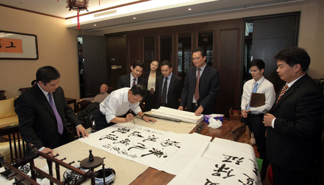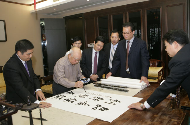 座談會結束后,會長們還欣然揮毫為我集團題詞并親切地和公司領導合影留念。