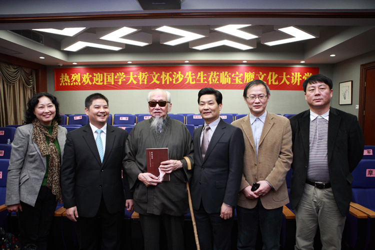 2013年1月17日,103歲高齡的國學(xué)大哲文懷沙先生應(yīng)寶鷹集團(tuán)邀請,不遠(yuǎn)萬里專程從北京來到深圳蒞臨寶鷹文化大講堂講學(xué),弘揚(yáng)傳統(tǒng)國學(xué)智慧,創(chuàng)新企業(yè)管理思維。著名學(xué)者摩羅及特邀的三十多位嘉賓朋友蒞臨參加,集團(tuán)董事局主席古少明、董事常務(wù)副總裁許平、監(jiān)事會主席胡蘭萍等領(lǐng)導(dǎo)與嘉賓們一起聆聽了精彩的講座。