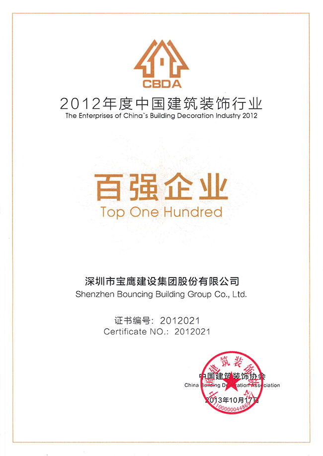 百強企業(yè)評介活動從一個側(cè)面記錄了中國裝飾行業(yè)發(fā)展壯大的歷程,在一定程度上見證了中國優(yōu)秀裝飾企業(yè)的發(fā)展軌跡。百強企業(yè)稱號也將鞭策著寶鷹集團持續(xù)塑造優(yōu)質(zhì)品牌,鼓勵著寶鷹人繼續(xù)發(fā)揚“團結(jié)、務實、奮斗、卓越”的精神,打造更多優(yōu)秀工程回饋社會。